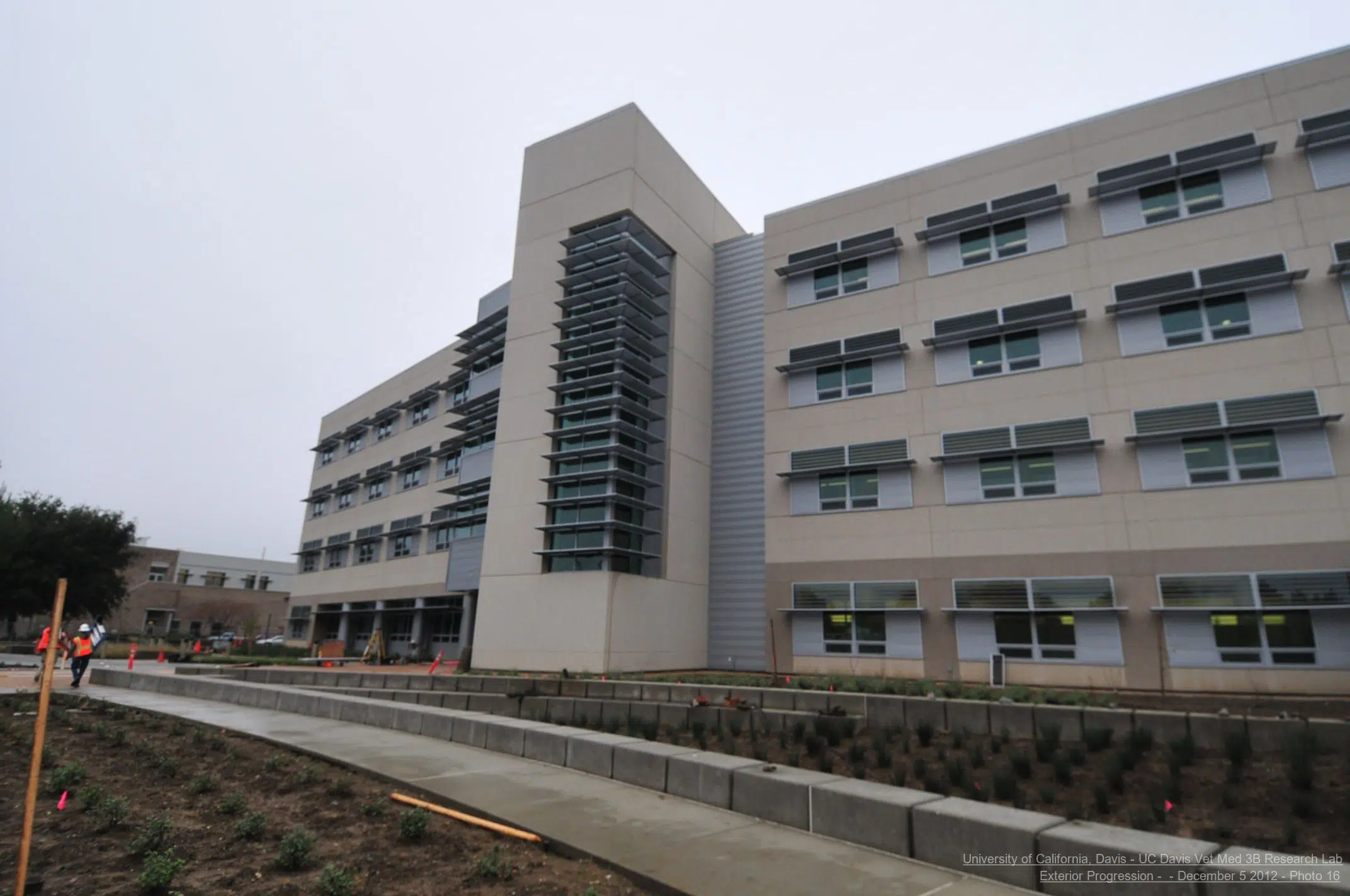 Vet Med 3B is a four-story structural research laboratory containing primary and support laboratories as well as faculty office space. The building is structural steel encompassed by a precast concrete and curtain wall façade. Many sustainable features were incorporated in the design leading to the project obtaining the Best Practices Award 2009 for all California higher education projects.